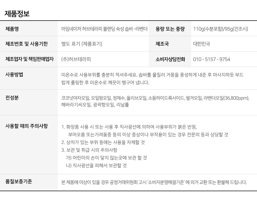 [리뉴얼] 아임네이처 허브테라피 블렌딩 숙성 솝바(라벤더)