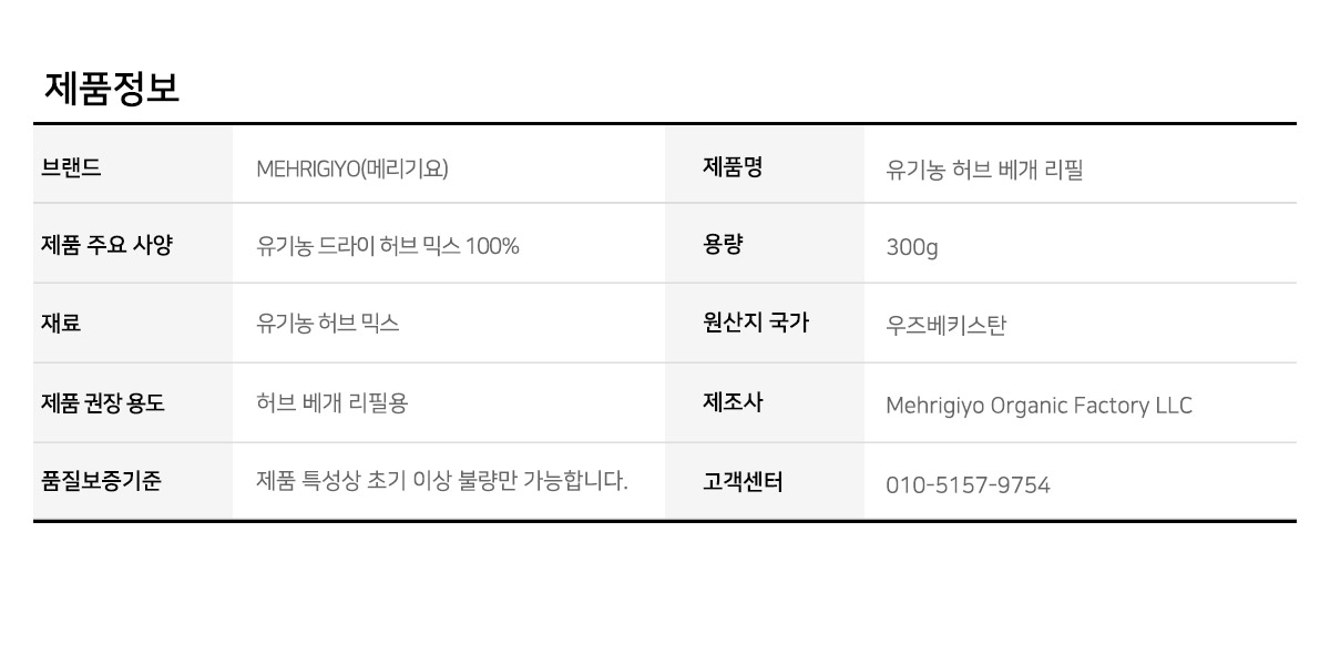 허브 베개(리필용) - 유기농 허브 믹스 300g